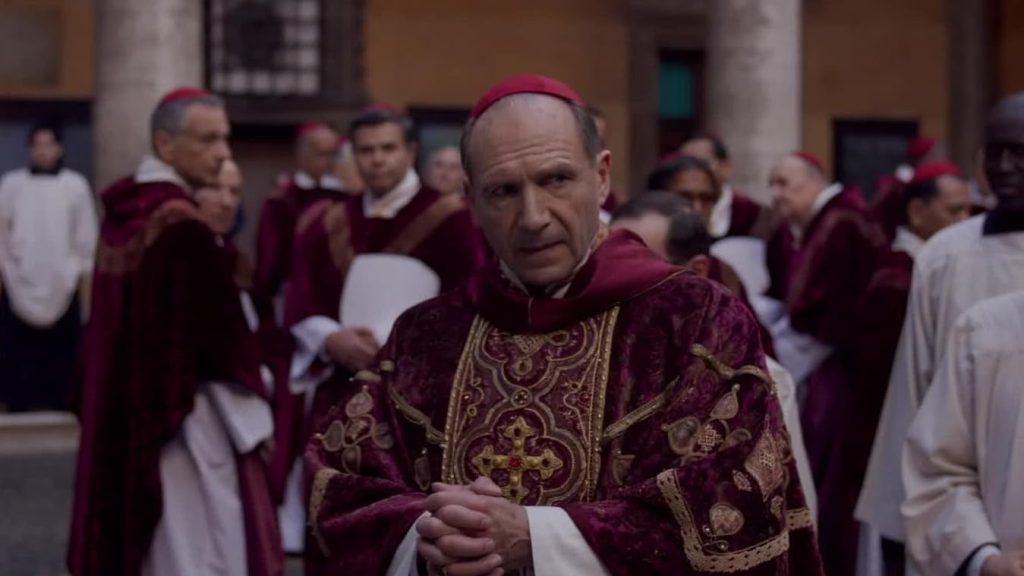 Un espectacular Ralph Fiennes es el cardenal Lawrence, quien sumido en una importante duda espiritual sobre todo lo que está ocurriendo con la muerte de un papa muy querido para él, comienza a darse cuenta, mientras lidera el conclave para decidir quién ocupará el nuevo lugar, de las ambiciones de sus colegas que urden estrategias para poder quedarse con el título papal.